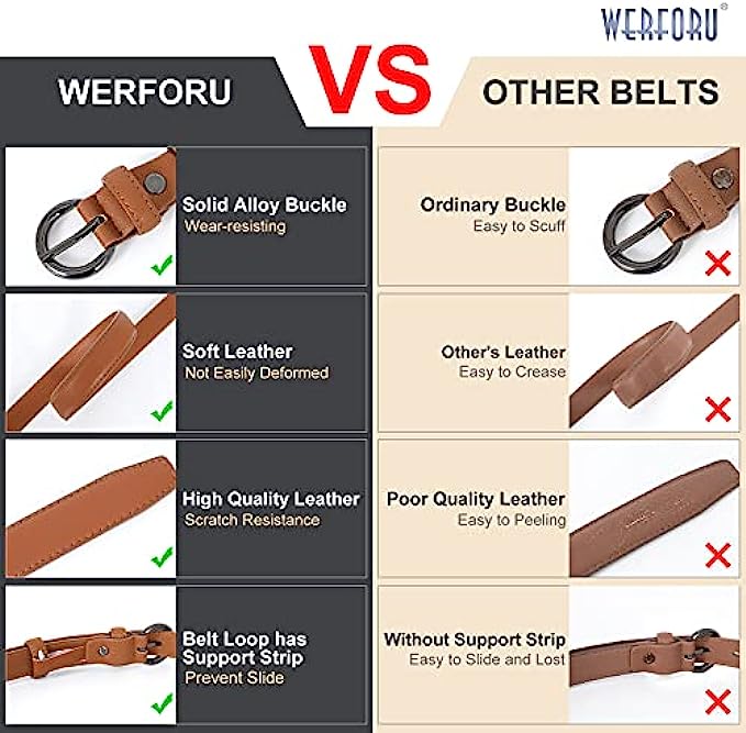 • MATERIAL- High quality leather belt + high quality alloy pin buckle, simple stylish design without any superfluous decoration.