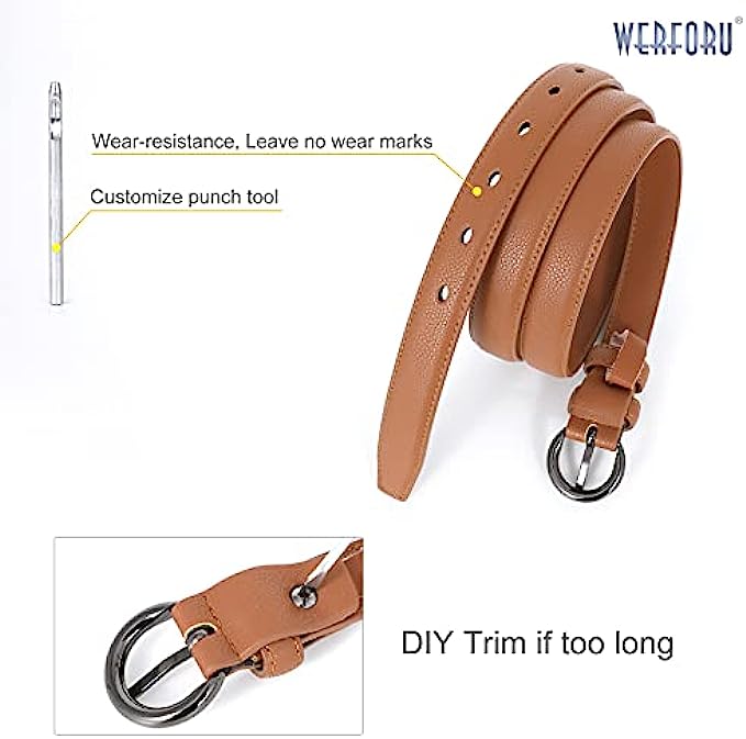 WERFORU 2 Pack Women Leather Belt Waist Skinny Dress Belts Solid Pin Buckle Belt for Jeans Pants